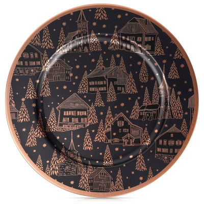 Krótki opis: Decorative placemat with a diameter of 33 cm. Made from high-quality material in black with a copper pinecone design.