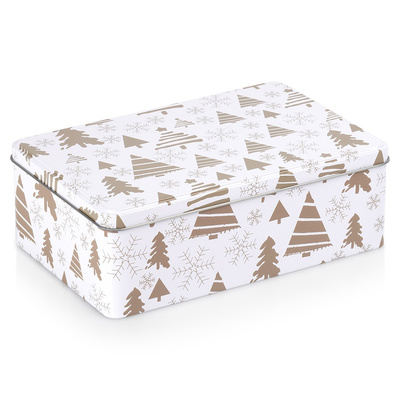 Krótki opis: A lidded container in the form of a tin with festive decor. Ideal for storing cookies, gingerbread, and small items.