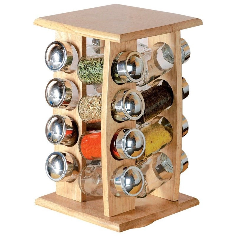 Stojak na przyprawy z pojemnikami drewniany obrotowy 16 el.
