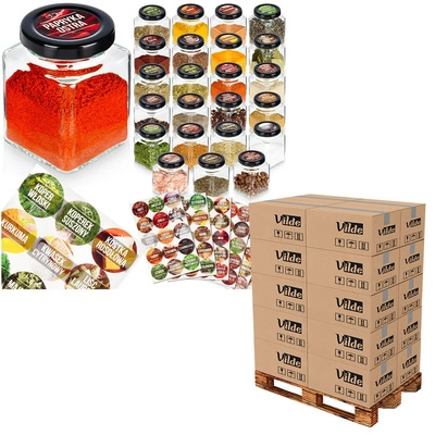 Pojemnik na przyprawy szklany 100 ml 24 szt. + 90 naklejek (paleta 180 szt.)