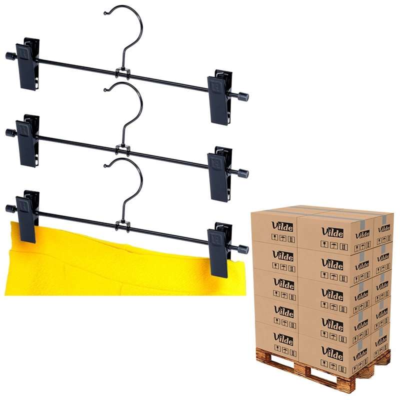 Wieszak na spodnie metalowy czarny z klipsami 3 szt. (paleta 1200 szt.)
