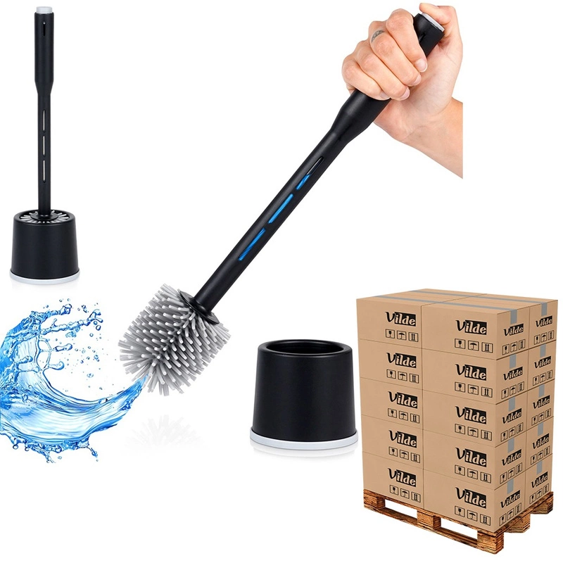 Szczotka do toalety silikonowa ze stojakiem i dozownikiem płynu czarna 40 cm (paleta 240 szt.)