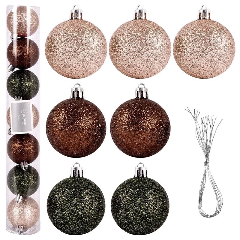 Bombki choinkowe zielone brązowe perłowe nietłukące 5 cm 7 szt.