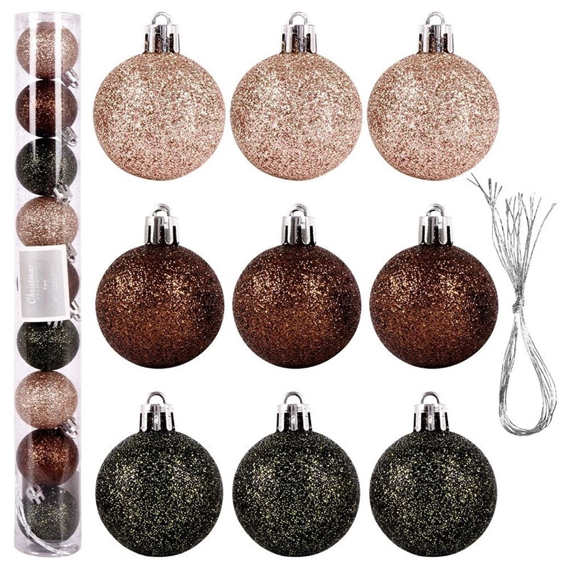 Bombki choinkowe zielone brązowe perłowe nietłukące 4 cm 9 szt.