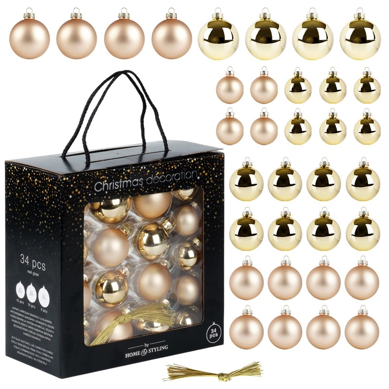 Bombki choinkowe szklane złote 4/5/6 cm 34 szt.